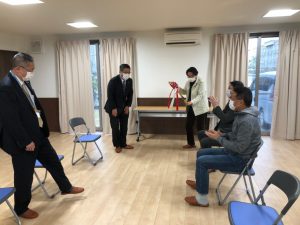 3月29日10時から、パークシティ東京ベイ新浦安Sea・Coco合同自治会集会所(以下、集会所)の開所式が行われ、内田市長よりSea安永氏へゴールデンキーが手渡されました。
